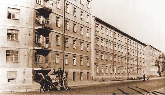 Когда я родился в 1937 году, родители вместе с бабушкой и дедушкой по маминой линии жили в коммунальной квартире на Литовском проспекте. 1937 год сейчас звучит довольно зловеще. Отравленная атмосфера подозрительности проникала и в быт. Мать рассказывала, что в их большой квартире проживала семья интеллигентных людей, у которых часто собиралась гости, слышалась музыка, по-видимому, танцевали, но за этими звуками кому-то из соседей послышался стук печатной машинки. Поступил донос, и этих людей не стало. В те годы и мать думала, что раз забрали, значит, это, видимо, какие-то враги, противники нашего государства. Только после хрущевских разоблачений и она предположила, что, скорее всего, это были очередные невинные жертвы. Перед войной родители вместе с маминым отцом и матерью получили новую трехкомнатную квартиру на Киевской улице в доме 16/22 (теперь он № 22/26), одним из немногих построенных для рабочих с относительно по тем временам большими удобствами. В квартире, конечно, не было ванной комнаты, а была лишь раковина на кухне, где стояла плита, которая и спасла нас от вымерзания в блокаду. Дом этот находился напротив главного въезда в печально знаменитые продуктовые склады им. Бадаева, которые были сожжены немецкой артиллерией 8 сентября 1941 года. Как пел Высоцкий: «Я видел, как горят Бадаевские склады…» Мне было тогда четыре года, и я должен был видеть эту картину, но память сохранила почему-то лишь пожар заградительного аэростата над нашим домом, что было очень страшно, потому что горело небо. Остались и некоторые другие отдельные воспоминания блокадных лет. Наш дом, теперь памятник эпохи конструктивизма, состоял из двух корпусов, как тогда говорили – флигелей.