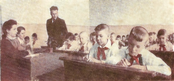 «Ленинские искры», 22 мая 1948 г. На первой парте Толя Смирнов (справа) и я