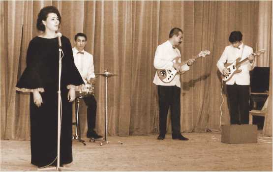 Вокально-инструментальный ансамбль советских специалистов, г. Ауэ. Слева Л. Кузьмина