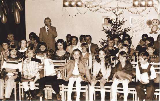 Совместный с немецкими детьми новогодний утренник. Крайний справа Саша. Ошац, 1979 год