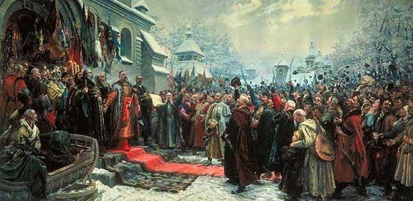 Восставшие не имели достаточно сил, чтобы совладать с магнатами. И тогда Хмельницкий обратился за помощью к единоверной России. 18 января 1654 г. состоялась Переяславская рада, на которой гетман, казацкая старшина и рядовые казаки присягнули на верность русскому царю. Теперь Речь Посполитая воевала с Русским царством, а не с казаками. За год русские заняли земли почти всей современной Белоруссии, т.е. завоевали большую часть Великого княжества Литовского. Поляки же не спешили на помощь своим собратьям.