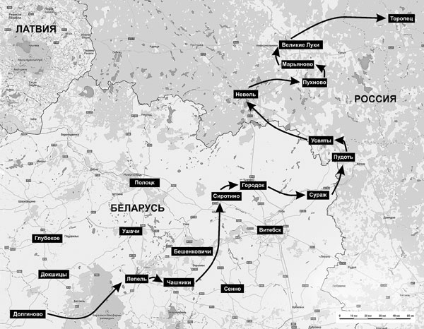 Карта Марша жизни, осуществленного под руководством Николая Киселева. Подготовил Сергей Мороз. Минск, 2014 г.