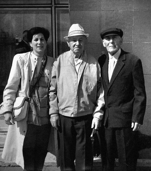 Геннадий Сафонов (справа), Файвл Соломянский и его дочь Орна. Вилейка, 1993 г.