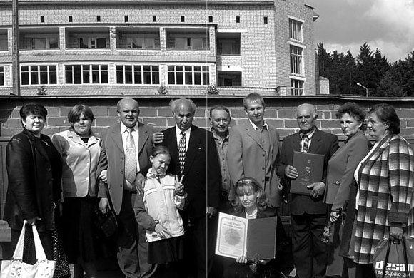 Потомки Праведников Народов Мира – семей Гараниных и Курьяновичей после вручения дипломов Праведников. В центре Шимон Хевлин, которого вместе с его семьей спасали в годы войны белорусские крестьяне. Минск, 2006 г.