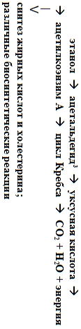 Предыдущий вывод получается если углубиться в биохимию окисления этанола в организме. Метаболизм этанола (его превращение, окисление) схематически можно представить следующим образом: