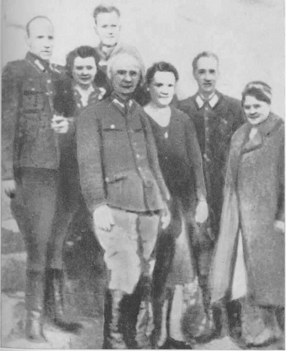 Изменница Родины Ю. Тибина, завербованная в свое время капитаном гитлеровской разведки Марией Де Смит (крайняя справа]. Тибина (в центре] ныне отрабатывает иудины сребреники на «Свободе» в качестве агента ЦРУ.