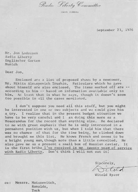 Послание Дж. Лодейзену — одному из американских шефов РС.