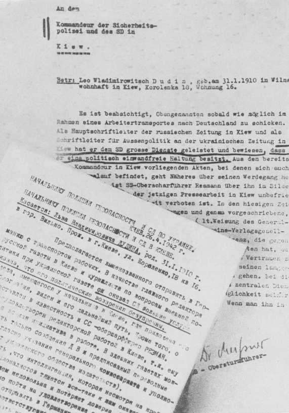 Фотокопии подлинных документов на изменника Родины Дудина, завербованного гитлеровской разведкой. Ныне он является агентом ЦРУ.