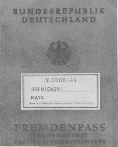 Обложка паспорта, который был выдан М. Гриневской в ФРГ.