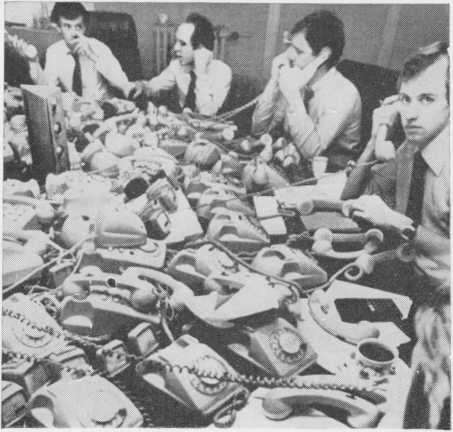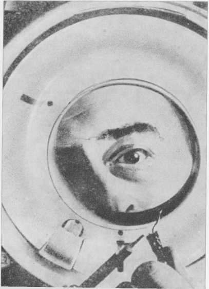 Агенты западных спецслужб готовят оборудование: в телефонную трубку закладывают подслушивающее устройство. Его компоненты настолько малы, что приходится делать пайку через сильное увеличительное стекло.