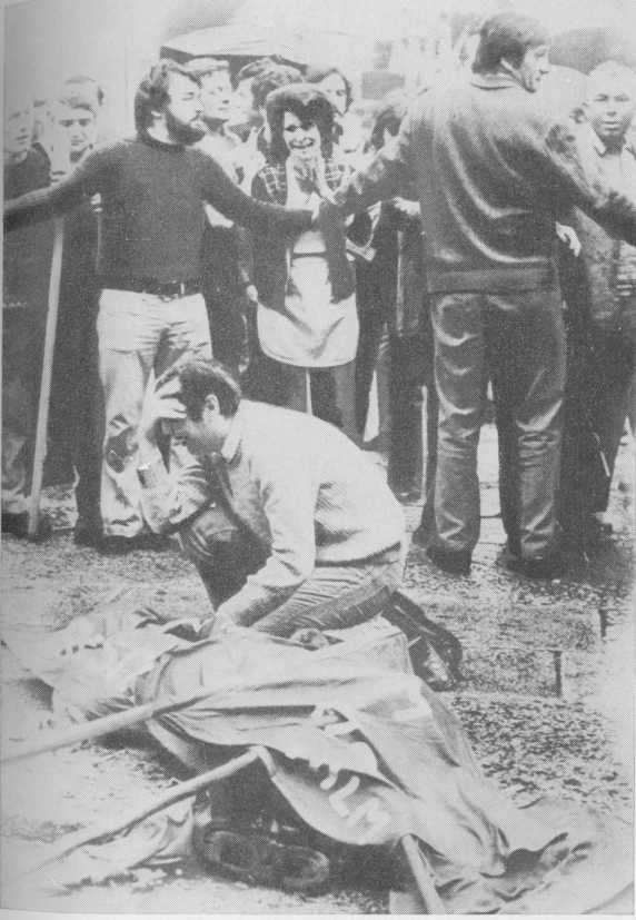 Этот юноша был убит на одной из римских улиц фашиствующими молодчиками во время демонстрации в защиту демократических свобод.