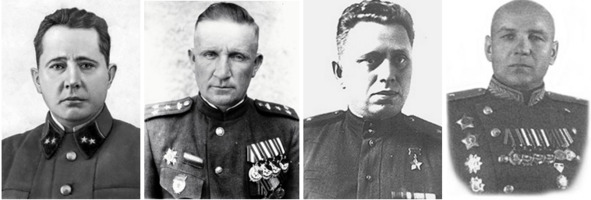 1. Л. М. Сандалов начальник штаба 4-й армии 2. А. С. Кислицын начальник штаба 22-й танковой дивизии 3. М. С. Зашибалов командир 86-й стрелковой дивизии 4. Г. В. Ревуненков начальник штаба 37-й стрелковой дивизии
