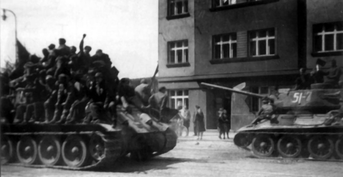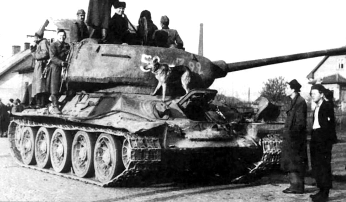 Т-34 5-го гвардейского танкового корпуса 6-й гвардейской танковой армии. Освобождение Йиглавы. 8 мая 1945 г., Чехословакия