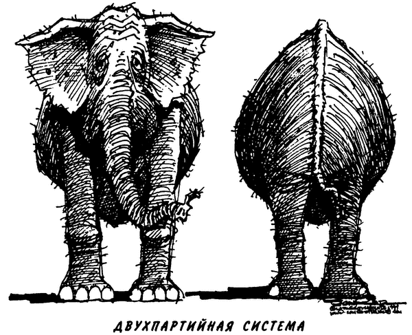 Две основные американские партии предлагают небольшой выбор. Не совсем точно характеризовать деятельность республиканцев и демократов как пиликанье на скрипке одной и той же примитивной мелодии. Будь они абсолютно одинаковы по имиджу и политическим принципам, им было бы труднее, чем сейчас, поддерживать в глазах избирателя видимость какого-то выбора. С точки зрения тех, кто выступает за радикальную смену национальных приоритетов, вопрос заключается не в том, есть ли различия между этими партиями, а в том, имеют ли различия между ними хоть какое-то существенное значение.