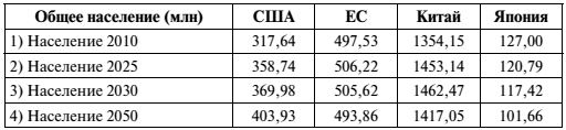 Источники: (1–4) прогнозы ООН, исходящие из среднего коэффициента рождаемости (ЕС = ЕС-27); (5) – «Всемирная книга фактов» ЦРУ.