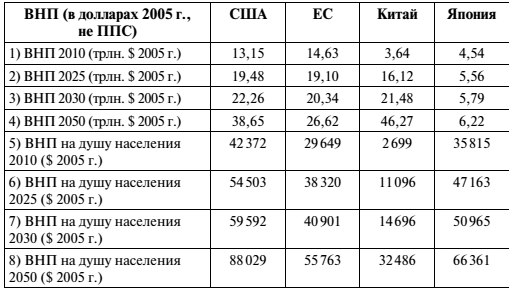 Более того, действительность такова, что Китай пока еще не готов – и еще несколько десятилетий не будет готов – в полной мере взять на себя мировую роль Америки. Само руководство Китая неоднократно подчеркивало, что по всем основным статьям развития, благосостояния и сил даже через несколько десятилетий Китай по-прежнему будет находиться на этапе модернизации, значительно отставая не только от США, но и от Европы и Японии по основным критериям современности и государственной мощи в пересчете на душу населения (см. таблицу 3.1).