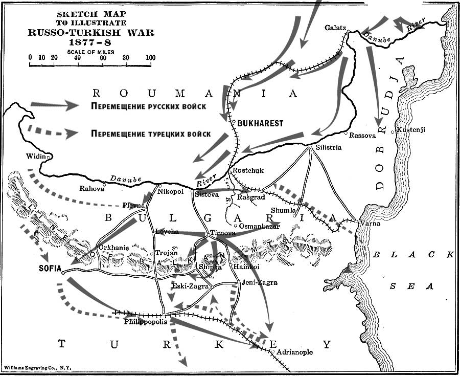 Наступление в 1877 году первое время шло удачно и стремительно. Хотя армия к войне с материально-технической точки зрения была очень плохо подготовлена. В составе русской армии воевали и подразделения болгарского ополчения, состоявшего из шести батальонов. Русские войска продвигались на юг, чтобы в кратчайшие сроки занять горные проходы через Балканы и выйти на оперативные просторы в Южную Болгарию. Особенно важно было занять Шипкинский перевал, откуда шла кратчайшая дорога на Адрианополь. И сначала это удалось — десятитысячный отряд под командованием генерала Иосифа Владимировича Гурко после двухдневных ожесточенных боев перешел хребет, вышел на южную сторону и овладел древней болгарской столицей городом Тырново. Турецкие войска в панике отходили. Но 7 июля турецкий отряд под командованием Осман-паши, переброшенный от сербской границы, после марш-броска занял крепость Плевну в Северной Болгарии. Из-за угрозы флангового удара движение русских войск через Балканы было приостановлено, а попытки выбить османов из Плевны успехом не увенчались. Началась осада Плевны, а турки перешли в наступление по всему фронту, чтобы выбить русских из Южной Болгарии.
