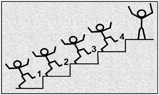 Казалось бы, очевидной вещи. Того, что двигаться следует по ступеням, строя оппозиционное движение и поднимаясь вместе с ним (рис. 14а).
