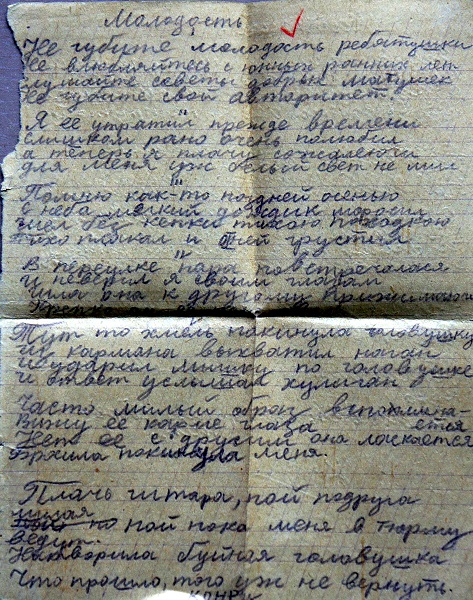 В какой-то момент (примерно через 10 дней после ареста) подследственный Винничевский почувствовал себя очень спокойно и принялся распевать непристойные песни. А сотруднику уголовного розыска, общавшемуся с ним под видом обычного ДОПР-овского контролёра, он даже написал и подарил несколько матерных стишат.