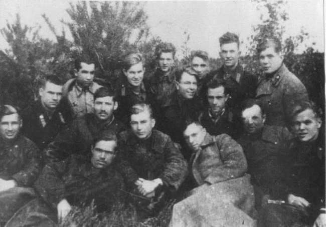 Группа летчиков 171-го Тульского ИАП. В центре 2-го ряда Ишанов, крайний справа во втором ряду – Старцев Георгий Никандрович совершил под Тулой тараны вражеского самолета в р-не Горбачево, Скуратово под Чернью. Лежит второй слева – Ивлев С.Т.