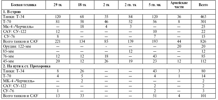 Донесение о состоянии материальной части и обеспечении 5-й гв. танковой армии на 17.00 11 июля 1943 г[792].