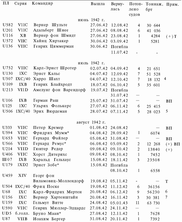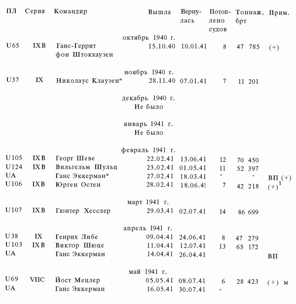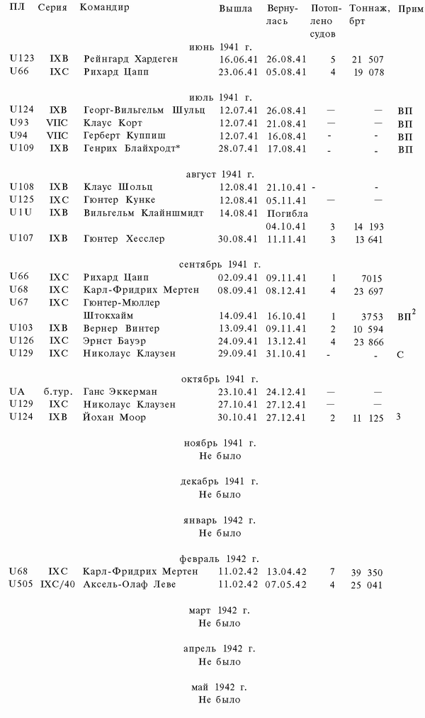 Приложение III ПАТРУЛИРОВАНИЕ НЕМЕЦКИХ ПОДВОДНЫХ ЛОДОК В ЮЖНОЙ АТЛАНТИКЕ (ОКТЯБРЬ 1940 ГОДА — АВГУСТ 1942 ГОДА)