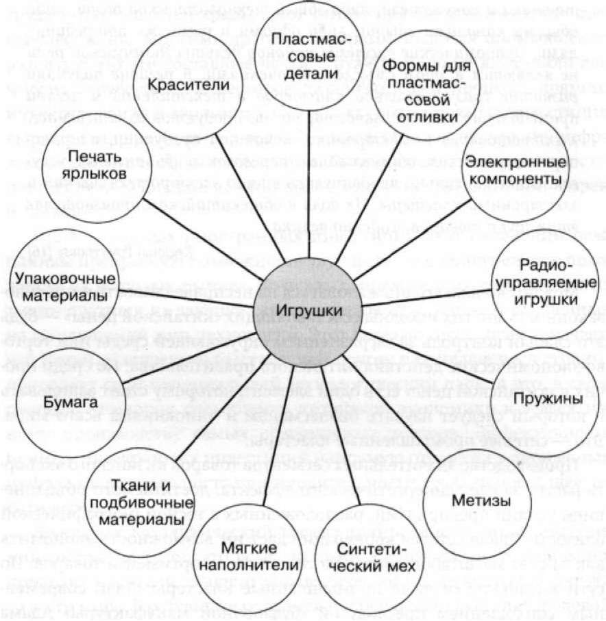 На рисунке видно, что все смежные производства, в которых нуждаются производители игрушек, расположены рядом. В числе смежников и производители упаковки, и производители пластмассовых деталей, и печатники, и производители мини-метизов и пружин, а также мягких наполнителей и синтетического меха. Особенно впечатляет в китайской кластерной модели то, что в нее иногда включаются целые города и поселки. При этом, в точном соответствии с современной трактовкой теории Адама Смита о максимальной экономической эффективности разделения труда, эти города специализируются только на одной операции или одном виде промышленного производства.
