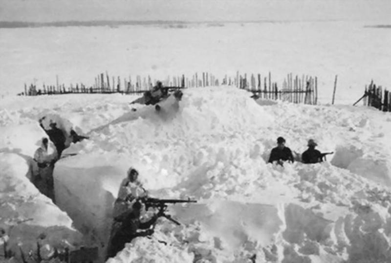 Расчет немецкого пулемета MG 34 в дзоте. Район Калинина, ноябрь 1941 года.