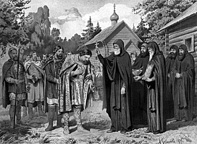 А. Кившенко. «Преподобный Сергий Радонежский благословляет святого благоверного великого князя Димитрия Донского на Куликовскую битву»