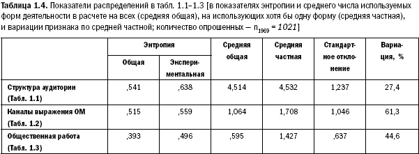 Отмеченные резко ограниченные сочетания форм приема дают 800 человек из 1000. Оставшаяся пятая часть распылена и статистически не даст отклонений в частотах своих оценок и формах поведения. Количество средств, используемых людьми, может вполне говорить о характере информационного приема и его интенсивности на социетальном уровне.