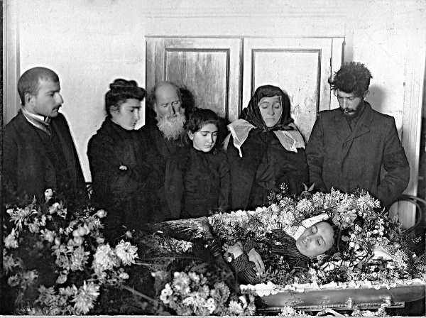 Сталин с матерью и семьей Сванидзе у гроба жены