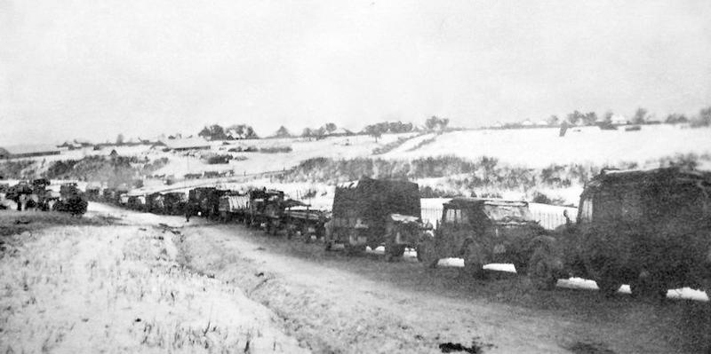 Тыловая колонна вермахта на дороге в районе Калинина.