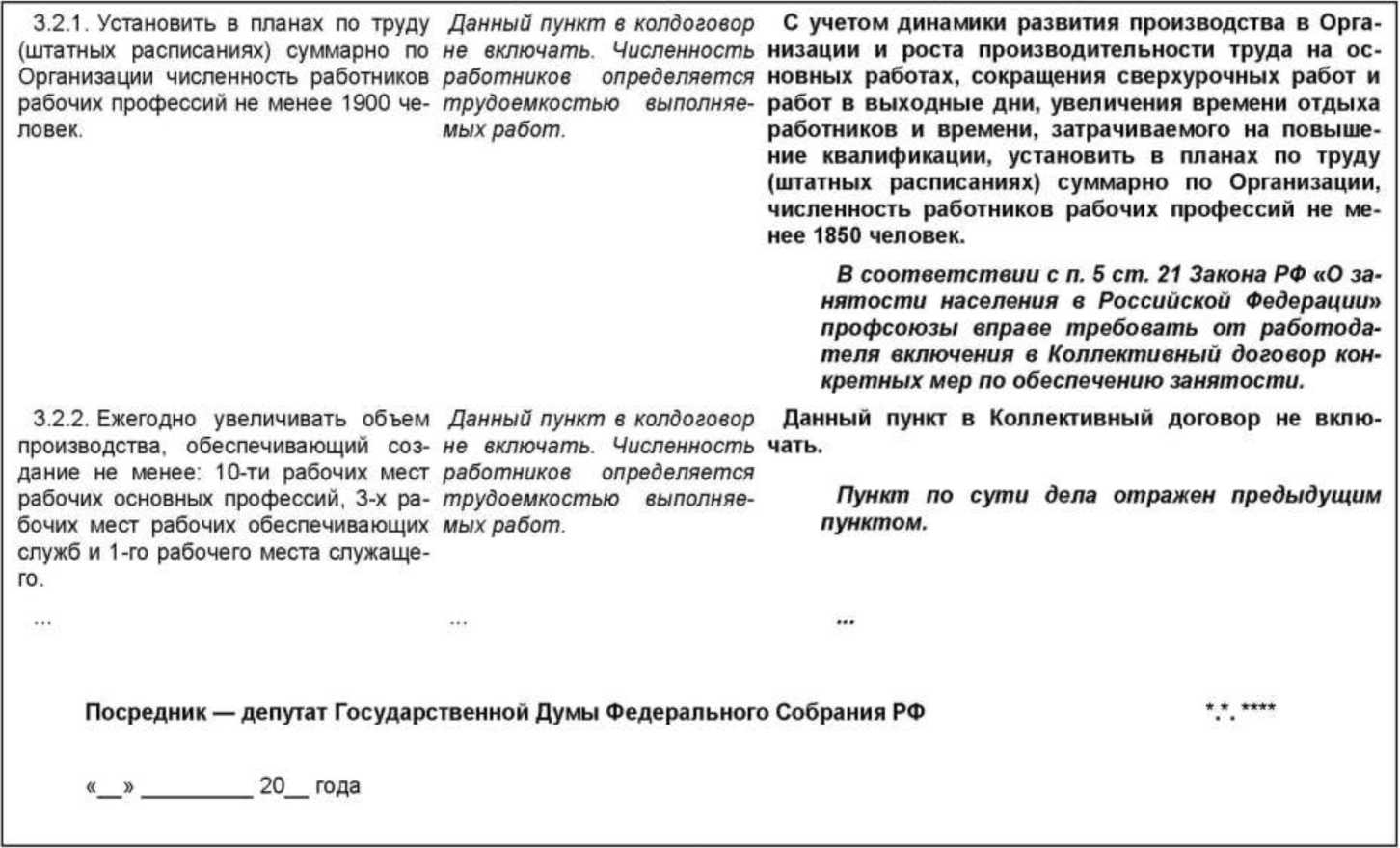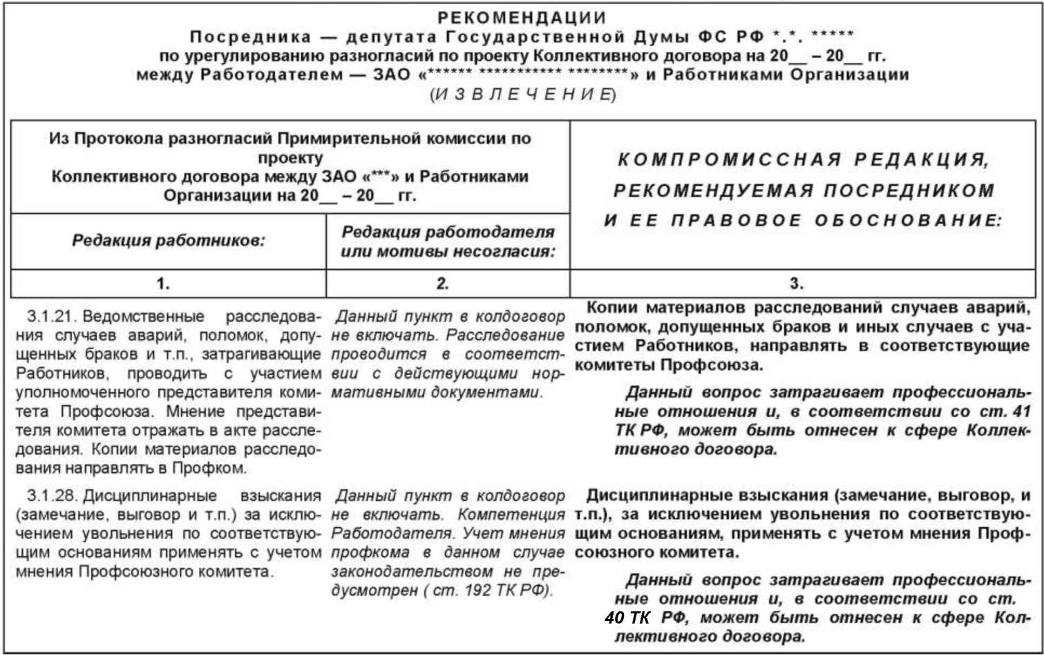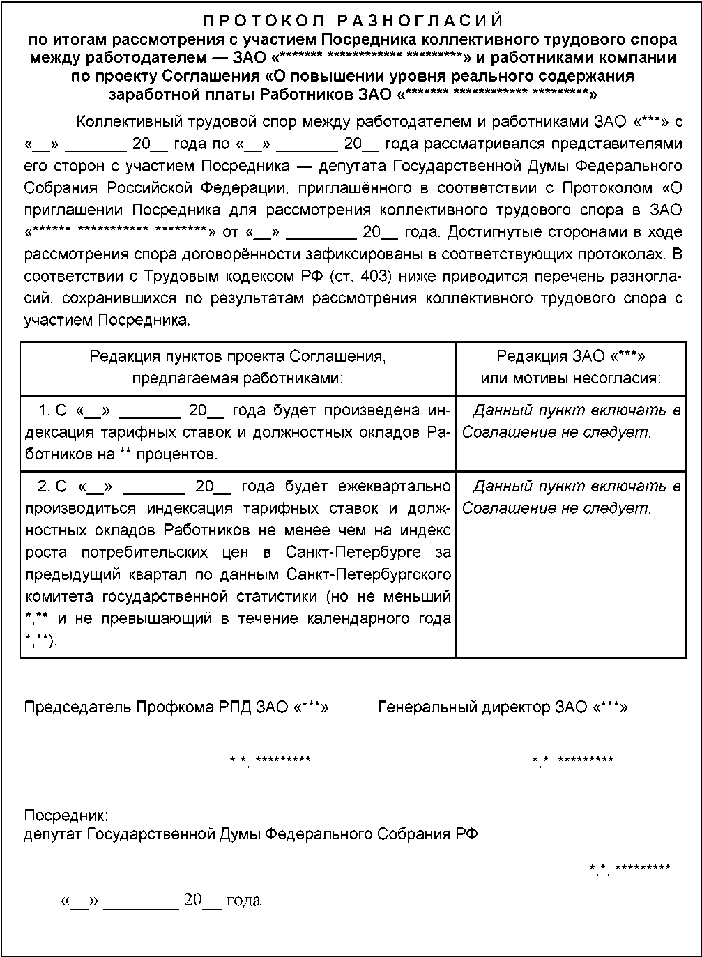Протокол разногласий по итогам рассмотрения с участием Посредника коллективного трудового спора