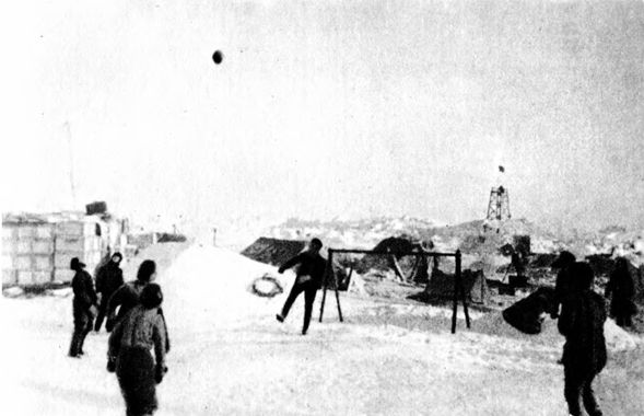Несмотря на тяжелую жизнь на льдине, челюскинцы не унывали. В редкие свободные минуты играли в футбол и в «лунки».