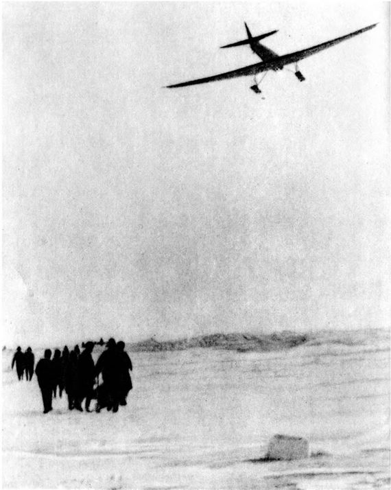 Первым в лагерь Шмидта прилетел А. Б. Ляпидевский.