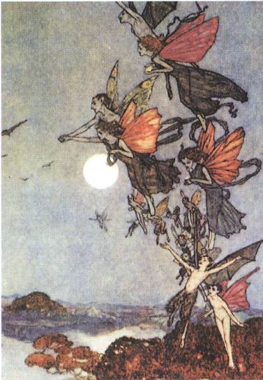 Так Е. Дула к изобразил эльфов, призванных магом Просперо в драме В. Шекспира Буря. Великий английский драматург очень часто обращался к фольклору своей страны.