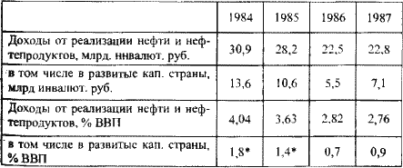 Последствия падения цен на нефть для доходов от реализации нефти и нефтепродуктов, 1984–1987 гг.