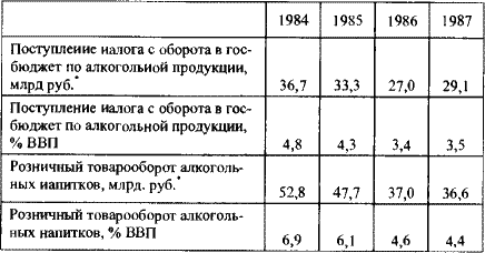 Финансовые последствия антиалкогольной компании в 1985–1987 гг.