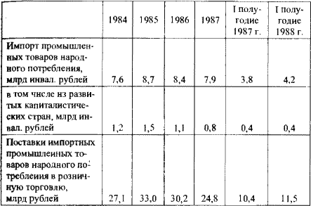 Взаимосвязь расстройства финансовой системы, денежного обращения и нарастание дефицита товаров на потребительском рынке в какой-то степени становится понятной советскому руководству лишь в конце 1988 г.[357] Все это происходит в момент, когда финансы и потребительский рынок страны развалены.