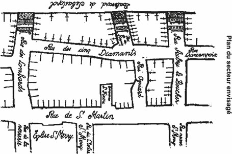 Ил. 56. Как пройти сквозь стены: рисунок, показывающий сочетание баррикад и «мышиных нор». Из «Инструкции к вооруженному восстанию» Луи Огюста Бланки.