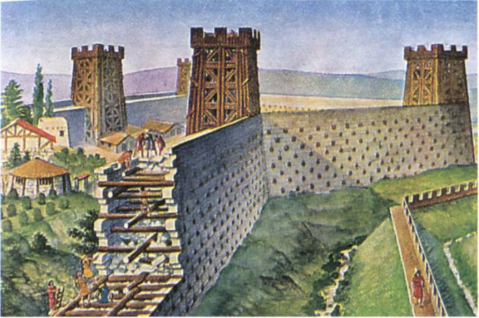 Оборонительная система галльской крепости в реконструкции, предложенной на картинке Либиха.