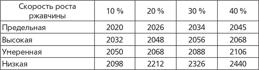 Предполагаемое время потери железа из стали носовой части «Титаника» (календарный год)