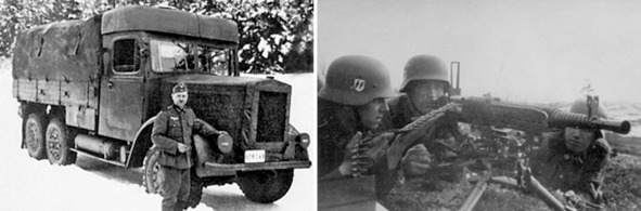 1. Грузовик «Шкода» в Вермахте 2. Расчет пулемета MG.37 (t) из состава войск СС (бывший чешский пулемет ZB-53)