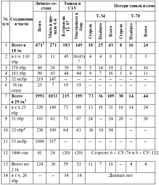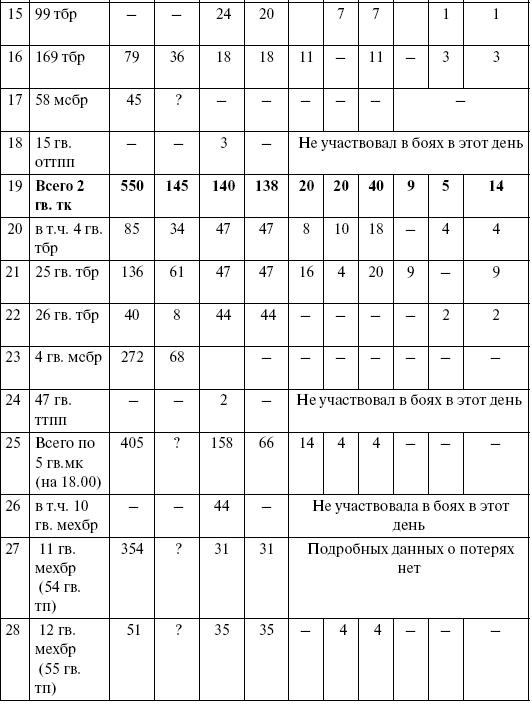 Сводные данные о потерях 5-й гвардейской танковой армии за 12 июля 1943 г[794].