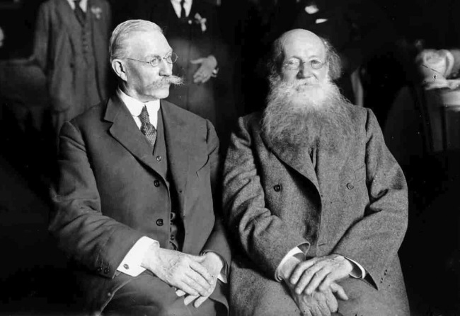Участники Государственного совещания П.Н. Милюков и П.А. Кропоткин, август 1917 г.
