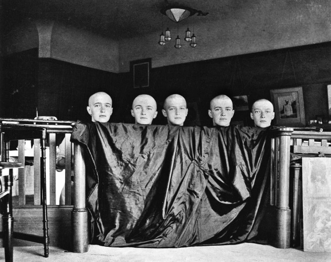 Обритые наголо после болезни дети Николая II и Александры Федоровны, февраль 1917 г.
