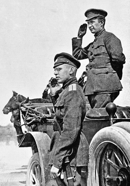 Военный и морской министр А.Ф. Керенский (справа) инспектирует войска на линии фронта, 22 июля 1917 г.