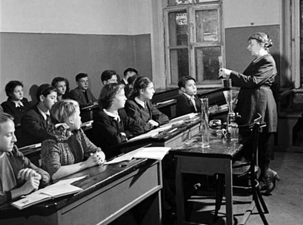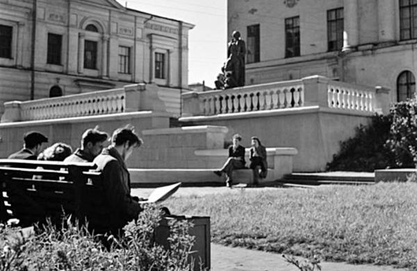 Повторяю: у нас оставалось очень мало времени. Наша жизнь пошла рывками. Мы бросались из одного места в другое, стараясь за несколько последних дней увидеть как можно больше. Мы посетили Московский университет, где старшекурсники оказались очень похожи на наших. Они толпились в коридорах, смеялись, носились из аудитории в аудиторию. Они ходили парами, юноши с девушками, как ходят наши. Во время войны в университет попадали бомбы, но студенты восстановили здание еще до ее окончания, поэтому он не закрывался.