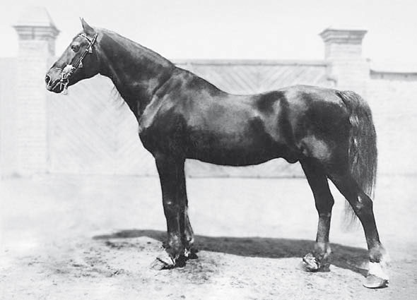 Рыцарь был также вороной масти, но крупнее Злодея – в нем было вершков пять росту. Никаких примет у Рыцаря не было. Он был необыкновенно густ, капитален, широк и делен. При большом росте и большой массе – сух, а это довольно редкое явление для лошадей подобного чекана. У него была маленькая голова (в Прилепах имеется большой портрет Рыцаря кисти Репина-сына, где голова утрированно мала, в действительности она была больше), несколько мясистая, но с хорошим выходом шея, превосходная спина, как, впрочем, у всех борисовских лошадей, хороший окорок и такие же передние и задние ноги. На этой лошади, с моей точки зрения, было чересчур много мяса, но в то время это ставили в особую заслугу. Отличительной чертой Рыцаря была его необыкновенная ширина: он так широко стоял передом, что между его передними ногами можно было пролезть. При этом он был чуть косолап. В то время шириной постанова ног увлекались чрезмерно и Рыцаря считали выдающейся лошадью: думали, что в таком постанове кроется резвость и страшная сила. Разумеется, это ошибочно. По типу Рыцарь более всего приближался к улучшенному голландскому рысаку, потому что имел хорошую спину и не был сырым. Такое изменение типа следует отнести отчасти к местности, в которой он родился. Сухой климат и меловая подпочва Екатеринославской губернии способствовали тому, что борисовские лошади стали суше и несколько отошли от типа своих предков, которые, особенно лошади Молоцкого, были сыры, тяжелы и отчасти грубы. Рыцарь был лошадью не моего романа, но я должен признать, что он был по-своему выдающимся жеребцом и у него было много поклонников.
