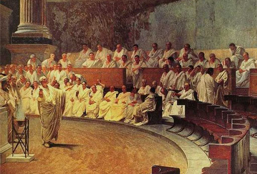 Слава Рима также берет начало в древней революции. По-видимому, первоначально городом-государством Римом правили этрусские цари. В конце VI в. до н. э. римляне восстали и изгнали последнего иноплеменного царя, заменив монархию правлением горожан, которое они; назвали республикой. Этот термин происходил от латинского res publica, или «общественное дело», и указывал на то, что политика теперь не личное дело царей и знати, а предмет общей заботы. Революция породила режим, при котором аристократический Сенат предлагал законы, но при этом все граждане голосовали в Собраниях, избиравшихтлавных представителей власти — консулов и трибунов — и принимавших законы.
